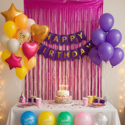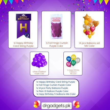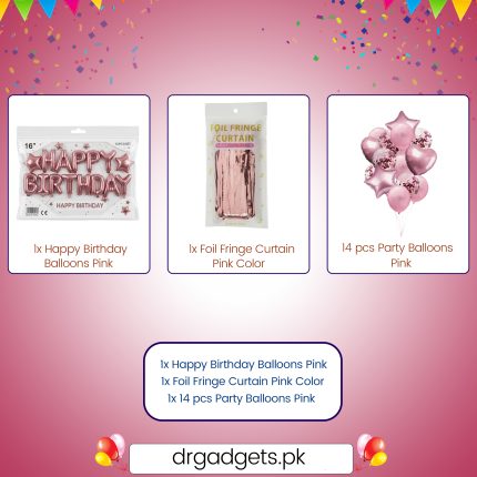 ₨ 1,350The kit is grounded by a festive Pink/Fuchsia Fringe Curtain, which serves as an instant photo booth background, and a dedicated “HAPPY BIRTHDAY” Banner.