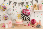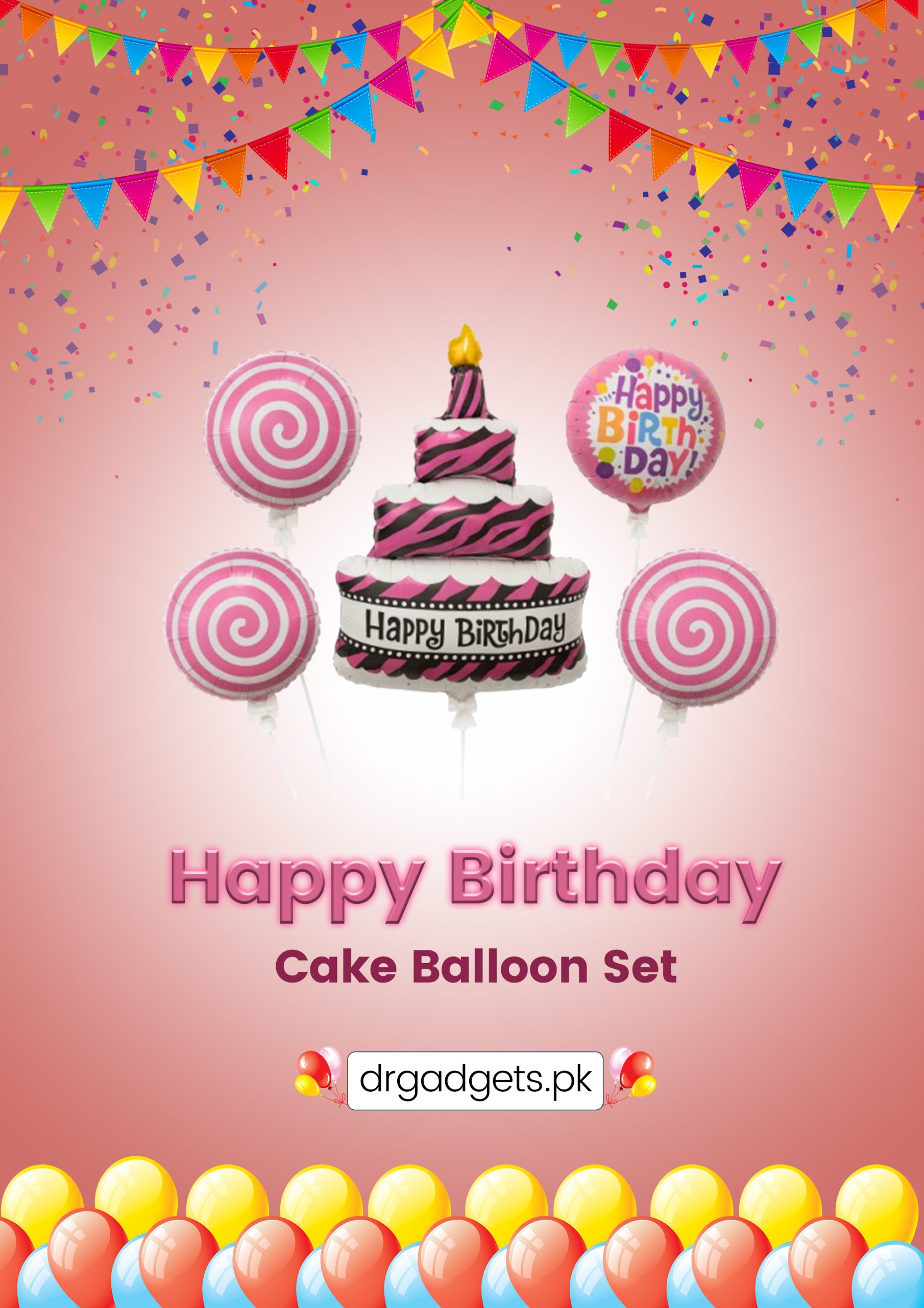 Make your birthday celebration unforgettable with this 5-piece Pink Happy Birthday Balloon Set. Featuring a stylish cake-shaped balloon with pink zebra stripes, two swirl-pattern balloons, and two “Happy Birthday” round balloons with confetti-style prints, this set adds a fun, vibrant, and festive touch to your party.