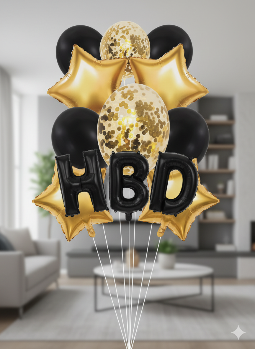 Celebrate in style with the Black & Gold Birthday Balloon Decoration Set (11 PCS) – a perfect choice for making birthdays unforgettable. This set combines gold star-shaped foil balloons, sparkling confetti balloons, and bold black latex balloons to create a glamorous party atmosphere.