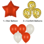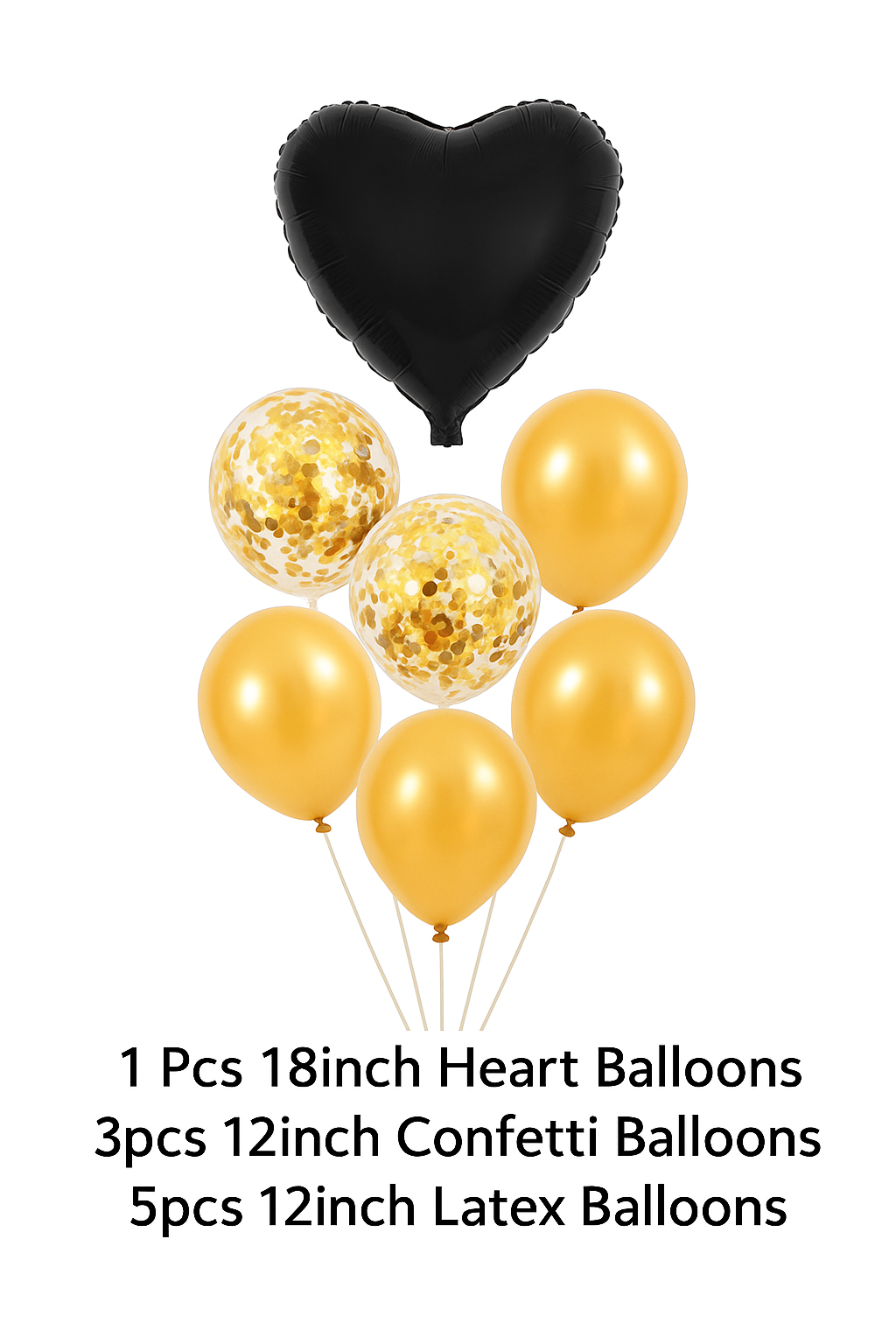 Create a striking and professional-looking balloon display with this 9-Piece Black, Red, and Confetti Balloon Bouquet Kit. This pre-selected set takes the guesswork out of color coordination, providing nine balloons in complementary shades and styles for an instant festive arrangement. The kit includes solid red and black balloons for bold contrast, confetti-filled balloons for sparkle, and a large black star foil balloon as the dramatic centerpiece.