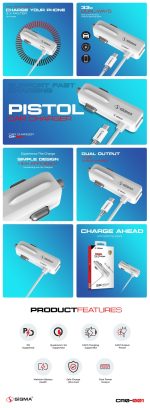 The Sigma Car Charger CR001 delivers fast, reliable charging with a single USB port. Compact, portable, and built with safety protections for overcurrent, overvoltage, and overheating.