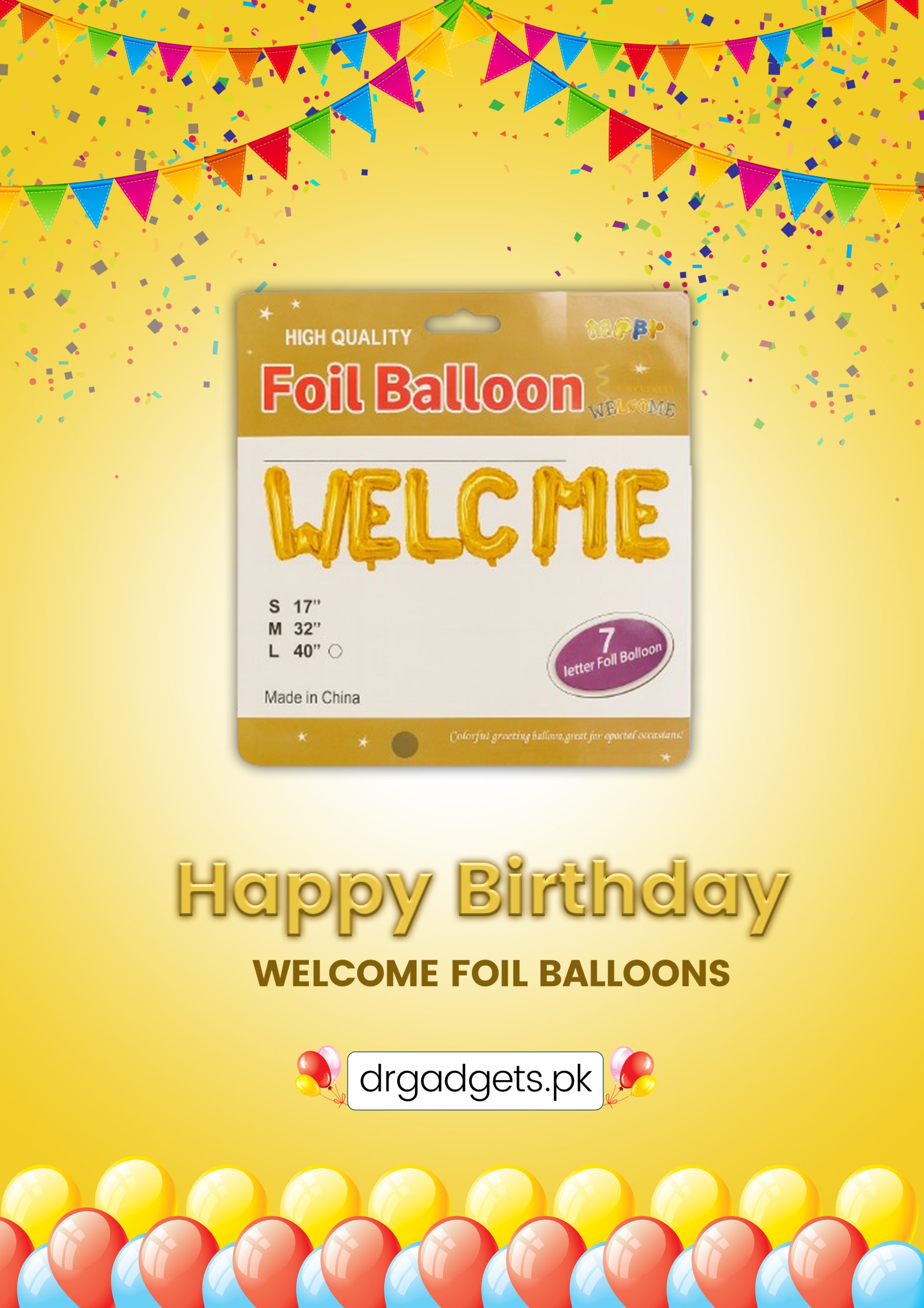 Bring warmth and joy to any gathering with this WELCOME Foil Balloon Decoration Set. The golden letter balloons create an eye-catching backdrop, perfect for greeting guests at home, office, or special occasions. Each balloon is crafted from durable foil material, ensuring they last throughout your event and can be reused.